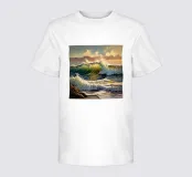 Dit olieverfschilderij vangt de kracht en schoonheid van de golven op zee. Torenhoge golven rijzen op en zwellen aan, weergegeven in vette streken van diepblauw, zeegroen en schuimend wit, waardoor opvallende contrasten ontstaan. Zonlicht weerkaatst op het oceaanoppervlak, glinsterend en steeds veranderend. Het schilderij roept een gevoel van vrijheid op, de grootsheid van de natuur en de grenzeloze energie van de zee.