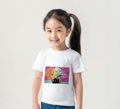 Al onze uniseks T-shirts voor kinderen worden geproduceerd en bedrukt door onze betrouwbare lokale partner.