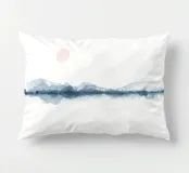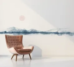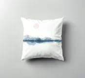 Add a serene touch to your space with this enchanting watercolor painting. Featuring a blue minimalist landscape with a soft pink sun on a white background, this sunset horizon piece is perfect for creating a tranquil atmosphere for meditation or relaxation. Embrace the Japandi aesthetic with this calming artwork that will elevate any room.