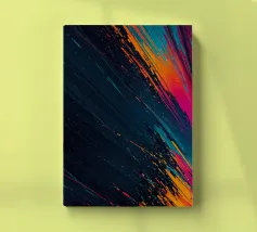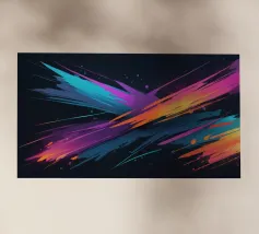 Dit kunstwerk heeft dynamische en levendige penseelstreken in blauwe, roze en oranje tinten, waardoor een energieke en boeiende abstracte achtergrond ontstaat die ideaal is als bureaubladachtergrond.