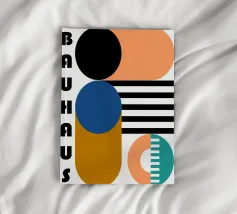 Dompel jezelf onder in de levendige en gestructureerde wereld van Bauhaus met deze fascinerende abstracte kunstprint. Het ontwerp heeft een complexe maar harmonieuze compositie van in elkaar grijpende geometrische vormen - cirkels, kwartcirkels en vierkanten - in een dynamisch palet van goudgeel, lichtblauw, diep marineblauw en warm oranje. Dit stuk belichaamt perfect de innovatieve geest en functionele schoonheid die centraal staan in de Bauhaus-beweging en creëert een visueel stimulerend patroon dat zowel modern als tijdloos is. Geproduceerd met een indrukwekkende resolutie van 7000 x 5000 pixels en 300 dpi, garandeert deze hoogwaardige digitale kunst