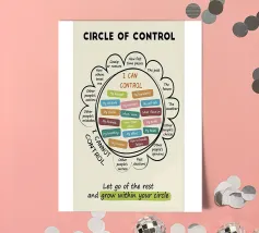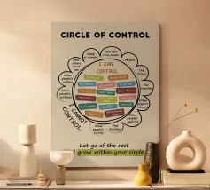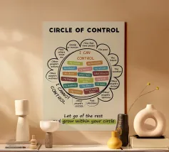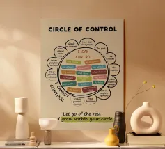 Dit inspirerende kunstwerk "Circle of Control Classroom" herinnert ons eraan dat we ons moeten richten op wat we kunnen controleren - onze denkwijze, keuzes en acties - terwijl we dingen loslaten waar we geen invloed op hebben. Perfect voor klaslokalen, kantoren of persoonlijke ruimtes, het moedigt mindfulness, veerkracht en zelfgroei aan, en bevordert balans, positiviteit en innerlijke kracht in het dagelijks leven.