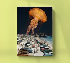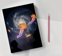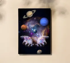 Stap in een speelse kosmische fantasie met dit levendige surrealistische kunstwerk met een paar stoere laarzen die moeiteloos door een kleurrijk sterrenstelsel zweven. Omringd door planeten, sterren, kometen en nevelwolken combineert het ontwerp humor, verbeelding en avontuur in één gedurfd beeld. De warme tinten van de laarzen contrasteren prachtig met de diepe ruimteachtergrond, waardoor een leuk, opvallend stuk ontstaat dat perfect is voor dromers, ontdekkingsreizigers en liefhebbers van eigenzinnige kosmische kunst.