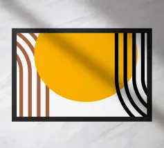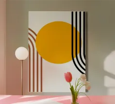 Ontdek dynamische geometrische abstractie met deze opvallende, op Bauhaus geïnspireerde grafische print. Met een fascinerende abstracte compositie van geometrische vormen zoals cirkels, halve cirkels en gebogen lijnen in krachtige kleuren (geel, bruin, zwart), gerangschikt in een dynamisch abstract ontwerp. Dit kunstwerk belichaamt de principes van modernistisch ontwerp - vorm, kleur en compositie, met een eigentijds gevoel beïnvloed door de Bauhaus-beweging, met de nadruk op het samenspel van geometrische vormen en levendige kleuren. Dit digitale kunstbestand van hoge kwaliteit heeft een verbluffende resolutie van 7000 x 5000 pixels bij 300 dpi, waardoor je verzekerd bent van