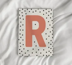 Het speelse ontwerp met de letter "E" in helder rood op een zwart stippenpatroon is een stijlvolle blikvanger. Perfect voor kinderkamers, moderne woonkamers of als cadeau-idee met een persoonlijk tintje. De heldere typografie in combinatie met een Scandinavisch geïnspireerd patroon voegt een charmant accent toe aan elke kamer. Ideaal om te combineren met andere letters uit de serie.