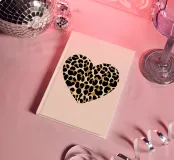 Gaaf dierenprintpatroon dat voor sommige producten ook gepersonaliseerd kan worden, want het patroon verschijnt in de vorm van een hart. Prachtig, handgetekend luipaardpatroon.