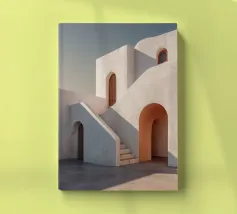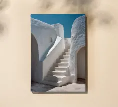 Haal de zachtheid van de Middellandse Zee in huis met deze designposter die een moderne trap illustreert, badend in gouden licht, tegen een achtergrond van kalme zee en pastelkleurige lucht. Strakke lijnen, grafische volumes en een poëtische sfeer maken deze visual een perfecte keuze voor een inspirerende, eigentijdse inrichting. Ideaal voor een woonkamer, kantoor of slaapkamer.