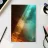 Zachte stralen van oranje en groenblauw licht filteren door een grot en verlichten ruige rotsformaties. Een mistige sfeer versterkt het mystieke gevoel en creëert een betoverende omgeving.