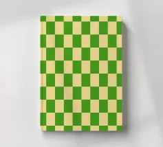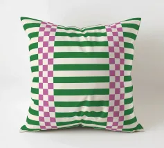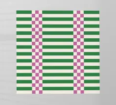 Paarse en smaragdgroene ruitjes en lijnen op een helderwitte achtergrond geven dit ontwerp een feestelijke, speelse twist. Ideaal om vrolijke energie en een vleugje moderne eclectische flair toe te voegen aan je inrichting.