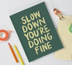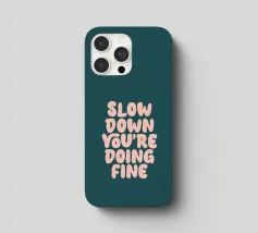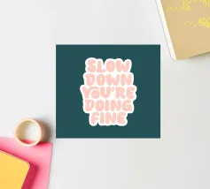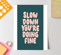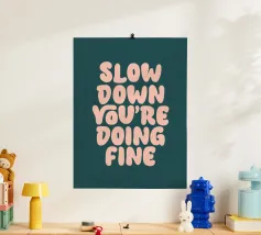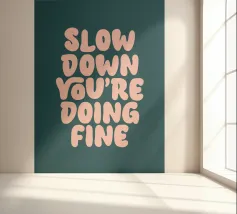 Omarm een rustiger tempo met onze rustgevende "Slow Down You're Doing Fine" kunstdruk. Dit charmante ontwerp heeft zachte perzikkleurige handgetekende letters op een rijke diepgroene achtergrond, waardoor een sereen en geruststellend beeld ontstaat. Dit veelzijdige kunstwerk is perfect voor drukke professionals, bezorgde geesten of iedereen die een geheugensteuntje nodig heeft om het leven stap voor stap te nemen en voegt een vleugje rust toe aan elke ruimte. De contrasterende kleuren en het handgemaakte gevoel bieden een troostende aanwezigheid en dienen als dagelijkse herinnering om lief voor jezelf te zijn en je vooruitgang te waarderen. Laat dit vredige kunstwerk je inspireren om even stil te staan