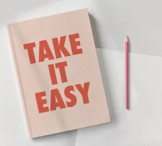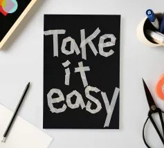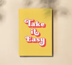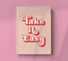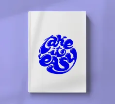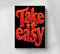 Een levendig typografieontwerp in retrostijl met de zin "Take It Easy" in vette, op de jaren 70 geïnspireerde letters. De warme mix van rood, blauw en mintgroen met steraccenten voegt een speels en nostalgisch gevoel toe, perfect voor een ontspannen en stijlvolle esthetiek. Een stijlvol, nostalgisch stuk dat rust en vreugde uitstraalt. Ontworpen door showmemars