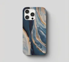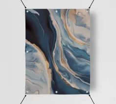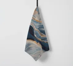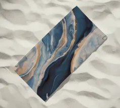 Gemarmerde blauwtinten bloeien met warmte als een vloed die de gouden kust ontmoet.