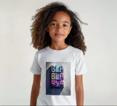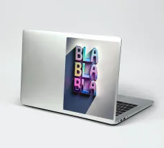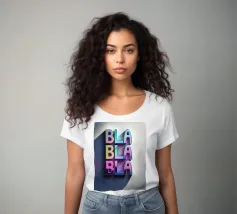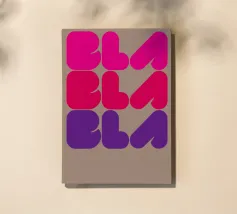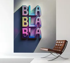 Maak een gedurfd statement met deze chromen "BLA BLA BLA" afbeelding! Deze levendige afbeelding in hoge resolutie bevat de woorden "BLA BLA BLA" in grote, iriserende chromen letters die afsteken tegen een heldere achtergrond. Elke letter straalt een mix van kleuren uit, waaronder blauw-, paars-, roze- en geeltinten, waardoor dit opvallende kunstwerk perfect is voor moderne interieurs en liefhebbers van chroomdecoratie. Ideaal als poster of billboard, deze afbeelding voegt meteen persoonlijkheid toe en geeft een speelse stijl aan elke muur, deken, kussen, gordijn of wat je maar wilt. Bujaboom