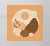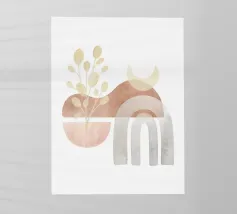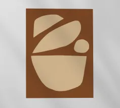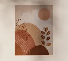 Dit kunstwerk toont een mix van abstracte vormen in warme tinten, met natuurlijke vormen en texturen. Het roept een gevoel van rust en creativiteit op, perfect voor hedendaagse ruimtes.