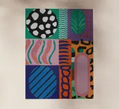 A vibrant grid showcases an eclectic mix of patterns, from polka dots and stripes to abstract organic shapes, creating a rich and decorative modern patchwork.