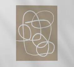 Diese moderne, abstrakte Illustration zeigt ein großen Knoten und Drehung in hellen Farben beige und weiß-creme, inspiriert von skandinavischem Boho-Stil. Die harmonischen Farbflächen und Linien erzeugen ein kindliches, verspieltes Muster, das die Schönheit der Natur feiert.