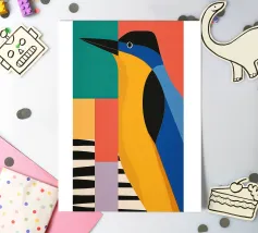 "Patchwork Perfection" vangt de levendige schoonheid van vogels, elk versierd in een mozaïek van kleurrijke patronen. Deze kunstdruk viert de harmonie van het palet van de natuur door middel van ingewikkelde gevederde details.