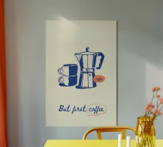 Welkom bij Coffee Club - de plek voor iedereen wiens dag echt begint met de eerste slok koffie. Hier vind je met liefde gemaakte ontwerpen die geïnspireerd zijn door alles wat met koffie te maken heeft: moderne typografie, grappige cartoons, minimalistische illustraties, botanische bonenmotieven en slimme uitspraken voor iedereen die zijn koffie een beetje te serieus neemt - of net serieus genoeg. Elk kunstwerk is gemaakt met zorg, een vleugje humor en een oog voor warme, gezellige esthetiek. Of het nu vet en donker is zoals een espresso of zacht en glad zoals een latte, elk ontwerp draagt die speciale mix van comfort en energie in zich. Alle prints zijn van hoge kwaliteit, zodat lijnen, vormen en woorden er helder, expressief en duurzaam uitzien - perfect voor keukens, kantoren, koffiecorners of als cadeau voor echte koffieliefhebbers. Coffee Club brengt meer dan kunst aan de muur - het brengt een gevoel: het moment van rust, vreugde en "laat me eerst een koffie pakken". Kunst die net zo opbeurend is als een goed brouwsel.