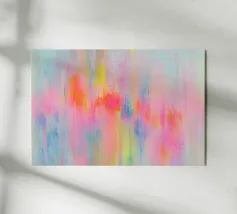 Dit abstracte structuurkunstwerk toont in elkaar overvloeiende kleurvlakken in neon pastelroze, geel, blauw, groen en roze. De zachte penseelstructuren en de harmonieuze popart-kleurcompositie creëren een levendige, dromerige sfeer. Het motief oogt modern, licht en emotioneel en nodigt uit tot vrije interpretatie.