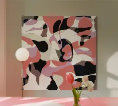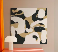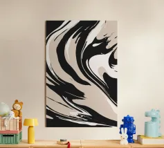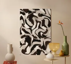 De unieke verfspetters en dynamische lijnen zorgen voor een gevoel van beweging en spontaniteit, waardoor deze illustratie een echte blikvanger is. Bovendien brengt het chaotische, maar harmonieuze ontwerp een gevoel van vrijheid en creativiteit in de ruimte.