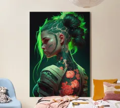 Een visionair portret van Ada Lovelace - de eerste vrouwelijke programmeur in de geschiedenis, geherinterpreteerd in een futuristische cyberpunkstijl. Tatoeages, technische gadgets en de binaire code "0/1" combineren historische genialiteit met moderne esthetiek. Voor alle fans van vrouwelijke empowerment, IT-cultuur en digitale kunst. Perfect als poster voor studeerkamers, galerieën of moderne leerruimtes.