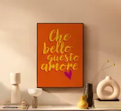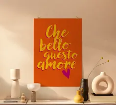 che bello questo amore, Italië, liefde, retro, amore, vintage, popart, liefde, woonkamer, slaapkamer, kantoor, keuken, typografie, quote, spreuk, roze, geel, oranje