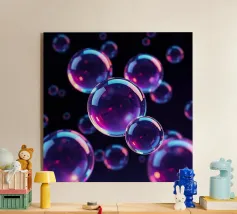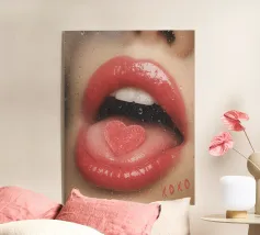 Romantisch hart met rode hibiscusbloemen - Dit levendige kunstwerk toont een fonkelend, glinsterend hart in een transparante bel, zwevend tussen felrode hibiscusbloemen in volle bloei. De weelderige groene bladeren en intens rode bloemblaadjes vormen een opvallend contrast, terwijl het zonlicht prachtig weerkaatst op de luchtbel, wat bijdraagt aan de dromerige, grillige sfeer. Dit schilderij is ideaal om een vleugje romantiek en op de natuur geïnspireerde elegantie toe te voegen aan elke kamer.