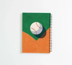 Een honkbal ligt op het iconische contrast tussen het groene speelveld en het oranje zanderige oppervlak van een honkbalveld. De minimalistische vormen en felle kleuren geven het ontwerp een retro-esthetiek die de energie en opwinding van honkbal perfect weergeeft. Ideaal voor honkbalfans en liefhebbers van sportieve ontwerpen.