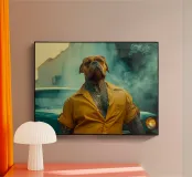 Absurde composities met mensenhonden. Mensenhonden die, net als wij, in Parijs, Los Angeles of Londen wonen en die, net als wij, gepassioneerd zijn door mode, auto's of helemaal niets. Honden die gedesillusioneerd, geamuseerd of geliefd zijn. Hippies en getatoeëerde honden. Kortom, honden die net als wij zijn. Of zijn wij zoals zij? Duik in de artistieke wereld van Dogland, een exclusieve collectie gewijd aan iedereen die zijn hond als een lid van de familie beschouwt. Hier is elke hondenposter een kunstwerk bedacht met humor, tederheid of elegantie. Of je nu een fan bent van buldoggen, teckels of corgi's, je zult de muurposter vinden die je huis zal laten blaffen van geluk. Geef je muren een honds accent met originele illustraties, afgedrukt op kwaliteitspapier, klaar om je interieur te sublimeren. Dogland is meer dan een winkel: het is een liefdesverklaring aan honden.