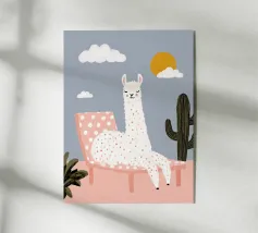 Breng gezellige woestijnsfeer in de kamer van uw kleintje met deze charmante lama-illustratie. Met een pluizige witte lama met zachte blosjes op de wangen en een warme koraalkleurige deken straalt dit kunstwerk persoonlijkheid en speelsheid uit. Deze print is perfect voor lama-liefhebbers en galeriewanden met een dierenthema en voegt warmte, karakter en een vleugje eigenzinnigheid toe aan elke ruimte. Een attent cadeau voor nieuwe ouders of een leuke aanvulling op een gezellige, op de natuur geïnspireerde kinderkamer.