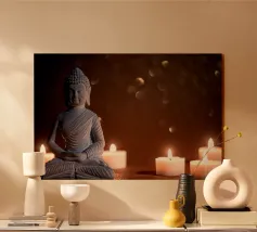 Buddha ist ein digitales Kunstwerk, gestaltet mit Computer-Grafik. Im Mittelpunkt steht eine stilisierte Darstellung des Buddha – ruhig, ausdrucksstark und harmonisch inszeniert. Klare Linien, sanfte Farbverläufe und ausgewogene Komposition verleihen dem Bild spirituelle Tiefe und zeitlose Eleganz. Die digitale Umsetzung betont die meditative Ausstrahlung der Figur und lädt zum Innehalten ein. Buddha steht für Achtsamkeit, Gelassenheit und die Verbindung von Tradition und moderner, visueller Sprache.