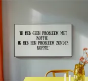 "Ik heb geen probleem met koffie. Ik heb een probleem zonder koffie." Leuk voor op een mok of shirt, voor een collega of vriend!