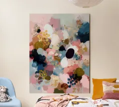 A richly layered abstract painting where soft colors and expressive brushstrokes come together in a balanced composition. This artwork feels lively yet calm, adding depth and warmth to modern interiors.