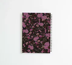 Grillig patroon van aquarelbloemen in donkerpaars en zwarte kleuren.