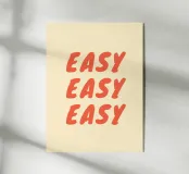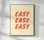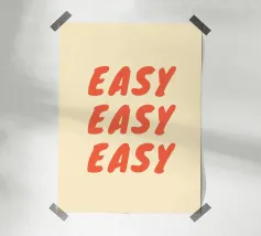 Een minimalistische typografische print met het herhaalde woord "Easy" in warme, handgeschilderde letters. Op een zachte neutrale achtergrond stimuleert dit ontwerp een rustig tempo, kalme energie en een ontspannen mentaliteit. Perfect voor moderne, Scandinavische en gezellige interieurs, het brengt een rustgevende, geruststellende aanwezigheid in woonkamers, slaapkamers, kantoren of creatieve ruimtes.