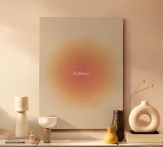 Deze heldere, minimalistische illustratie toont het woord "Balans" in het midden van een warm kleurverloop van zacht beige tot fel oranje. Het roept harmonie, stabiliteit en innerlijke vitaliteit op. Met zijn strakke ontwerp en zonnige tinten brengt het warmte en energie in elke leefruimte, terwijl het een kalme, eigentijdse esthetiek behoudt. Perfect voor een minimalistisch interieur, een meditatieruimte, een inspirerend kantoor of een poëtische slaapkamer.