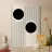 Dit minimalistische abstracte ontwerp bestaat uit opvallende zwarte cirkels in combinatie met fijne verticale lijnpatronen, waardoor een strakke en evenwichtige moderne compositie ontstaat. Het contrast tussen de solide vormen en de gestructureerde lineaire elementen zorgt voor een verfijnde, eigentijdse esthetiek die is geïnspireerd op moderne kunst en minimalistische ontwerpprincipes. Perfect voor liefhebbers van eenvoud, geometrie en tijdloze abstracte beelden. Ideaal voor kleding, posters, wanddecoraties en lifestyleproducten met een moderne, elegante uitstraling.