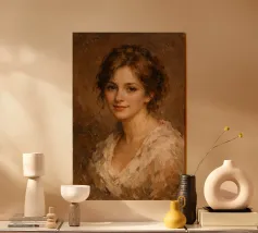 Een indrukwekkend, modern portret van een man in profiel, wiens gezicht en hoofd zachtjes oplossen in een afbrokkelende stenen structuur. Het werk speelt met het idee van identiteit, vergankelijkheid en innerlijke rust. De ingetogen, neutrale kleurtonen en kalme uitdrukking creëren een sfeer van diepte en reflectie - ideaal voor minimalistische ruimtes met karakter en een statement. LB