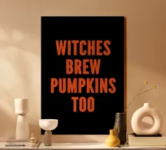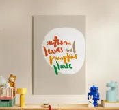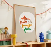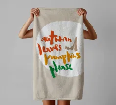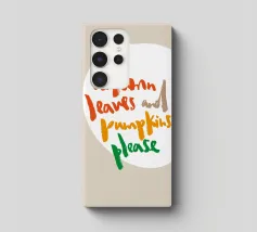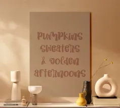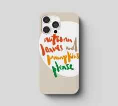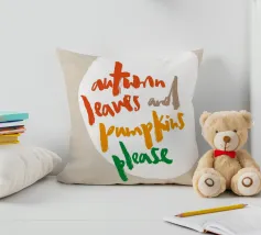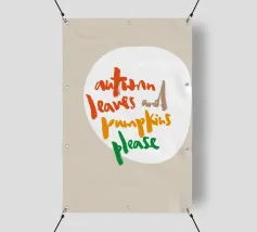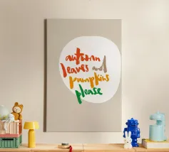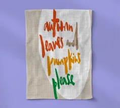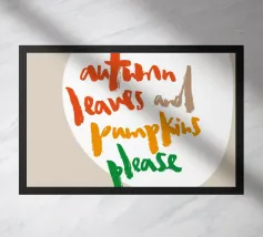 Brush Lettering Motiv "Fall leafs and pumpkins please" in knalligen Herbstfarben