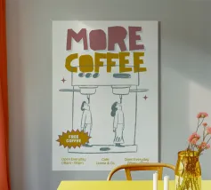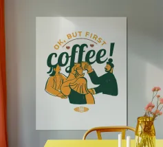 Welkom bij Coffee Club - de plek voor iedereen wiens dag echt begint met de eerste slok koffie. Hier vind je met liefde gemaakte ontwerpen die geïnspireerd zijn door alles wat met koffie te maken heeft: moderne typografie, grappige cartoons, minimalistische illustraties, botanische bonenmotieven en slimme uitspraken voor iedereen die zijn koffie een beetje te serieus neemt - of net serieus genoeg. Elk kunstwerk is gemaakt met zorg, een vleugje humor en een oog voor warme, gezellige esthetiek. Of het nu vet en donker is zoals een espresso of zacht en glad zoals een latte, elk ontwerp draagt die speciale mix van comfort en energie in zich. Alle prints zijn van hoge kwaliteit, zodat lijnen, vormen en woorden er helder, expressief en duurzaam uitzien - perfect voor keukens, kantoren, koffiecorners of als cadeau voor echte koffieliefhebbers. Coffee Club brengt meer dan kunst aan de muur - het brengt een gevoel: het moment van rust, vreugde en "laat me eerst een koffie pakken". Kunst die net zo opbeurend is als een goed brouwsel.
