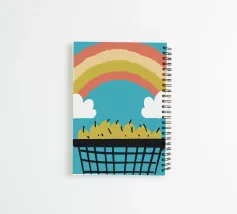 Illustratie "Fruit en regenbogen": Een explosie van kleur en frisheid! Dit vrolijke ontwerp combineert vers fruit en kleurrijke regenbogen.