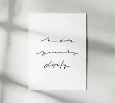 "Go with the flow!" - licht, vloeiend, gereduceerd. Dit ontwerp symboliseert loslaten, vertrouwen in het leven en de schoonheid van eenvoud. Een herinnering dat soms de zachtste weg de krachtigste is. Minimalistisch, elegant en precies goed voor iedereen die het leven met meer gemak wil benaderen.