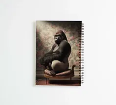 Een rustig fascinerend surrealistisch portret dat ruwe kracht plaatst in een onverwacht verfijnde setting. De figuur zit met zelfverzekerde kalmte in een elegante stoel tegen een patroonwand en combineert fysieke aanwezigheid met een gevoel van rustige waardigheid. Zachte, gerichte verlichting geeft vorm en textuur en geeft de scène een klassieke, bijna schilderachtige sfeer.