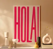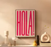 Fleur je kamer op met deze gedurfde en speelse "HOLA!" print - een levendige roze typografische groet in het Spaans die energie, plezier en culturele flair uitstraalt.
