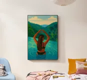 Breng serene tropische sferen in je interieur met deze levendige kunstprint van een vrouw in een overloopzwembad, handen die een hart vormen tegen een weelderige jungle achtergrond. Deze illustratie is geïnspireerd op gouache- en acrylstijlen en mengt natuur en vrouwelijke elegantie in warme, aardse tinten. Perfect voor moderne interieurs, wellnessruimtes of als een attent cadeau voor liefhebbers van reizen en zelfliefde.