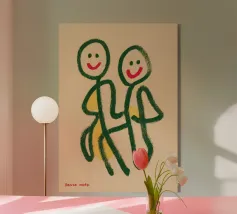 We gebruiken jouw ontwerp - in met de hand gemaakte lijsten. Klaar om op te hangen.