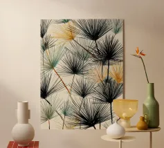 Een mistig, tonaal landschap van silhouetten van bomen en verzachte berglagen. Deze expressieve aquarel roept stille ochtenden, verre bergkammen en de stilte van ongerepte wildernis op. Perfect voor moderne interieurs die op zoek zijn naar stilte, diepte en natuurlijk mysterie.