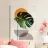 monsterablad botanisch grafische vormen oranje cirkel geometrische vormen blad silhouet plantenleven natuurlijk element tropisch thema groen gebladerte ontwerpcompositie halve cirkels minimale elementen modern ontwerp natuur focus decoratieve plant eenvoudige achtergrond overlappende vormen gestileerd blad zuivere lijnen