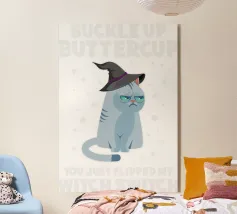 Een schattige tovenaarskat in een blauwe mantel staat op een magische cirkel en steekt zijn poot op met een brutale knipoog. Dit speelse ontwerp is een parodie op de iconische blauwe strategie om spreuken tegen te gaan in Magic: The Gathering. Perfect voor control spelers, blue deck fans en iedereen die graag "nee" zegt met stijl.