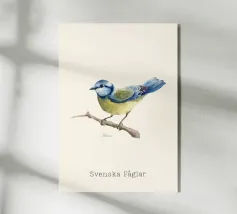 Dit ontwerp heeft een klassiek Zweeds folkloristisch patroon met decoratieve vogels in felblauw en warmrood. Het motief is geïnspireerd op de traditionele Zweedse volkskunst en combineert bloemelementen, symmetrische ornamenten en de typische kleuren die bekend zijn uit Dalarna, oud textiel en traditioneel handwerk.